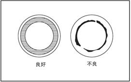 閥座的閥線寬度超過標準值時,用44°50′ 的閥座研磨機研削內側進行調整。