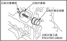 (3) 安裝襯套壓板和三菱S6R柴油發(fā)動(dòng)機(jī)凸輪軸襯套螺栓。
