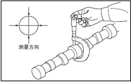 測(cè)量三菱S6R柴油發(fā)動(dòng)機(jī)凸輪軸頸部正交兩個(gè)方向的外徑。超過(guò)極限值時(shí)更換新的三菱S6R柴油發(fā)動(dòng)機(jī)凸輪軸。