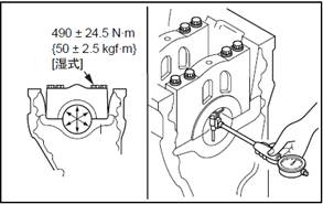 注: 三菱S6R柴油發(fā)動機主軸承瓦端蓋的緊固要領,參照「發(fā)動機本體的組裝」的「安裝三菱S6R柴油發(fā)動機主軸承瓦端蓋」項。