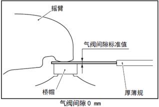 (2) 在搖臂和橋帽之間插入和三菱S6R柴油發(fā)動機(jī)氣閥門間隙標(biāo)準(zhǔn)值相同厚度的厚薄規(guī)。( 三菱S6R柴油發(fā)動機(jī)氣閥門間隙0 mm)