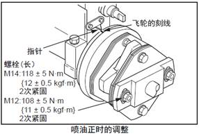 (4) 再次緩慢地正向盤車,使減振器上的規(guī)定噴油正時(shí)刻線和發(fā)動機(jī)的指針一致。這時(shí),確認(rèn)三菱S6R柴油發(fā)動機(jī)燃油噴油泵三菱S6R柴油發(fā)動機(jī)飛輪的記號「0」刻線和指針一致。不一致時(shí),反復(fù)實(shí)施(2) 項(xiàng)。