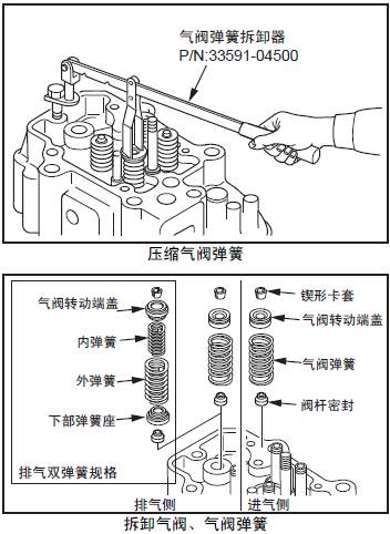 1.11 拆卸氣門、三菱S12柴油發動機氣門彈簧