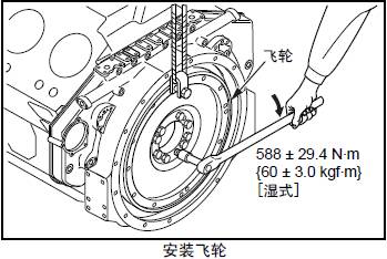 (3) 將三菱S12柴油發動機飛輪對準三菱S12柴油發動機曲軸的定位銷后安裝。