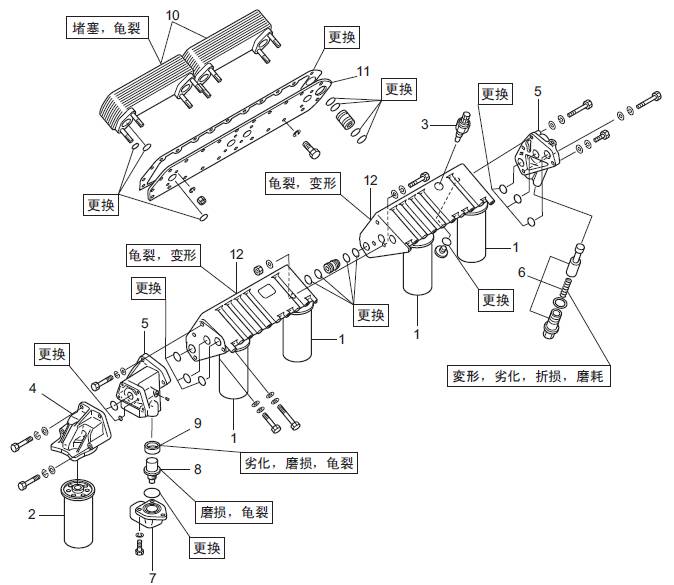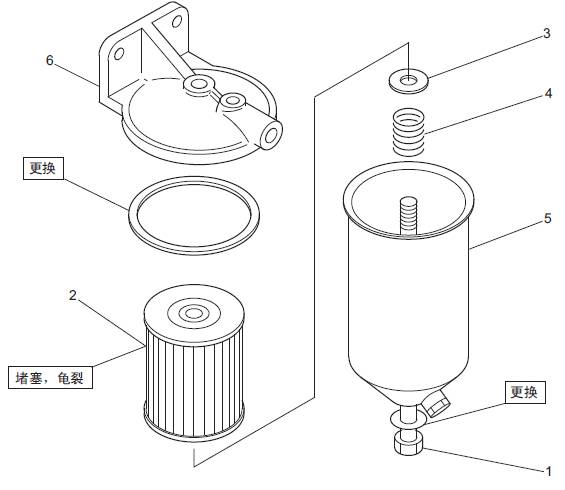 (2) 濾清器報警器的亮燈開始壓力超出標準值時,更換新品。