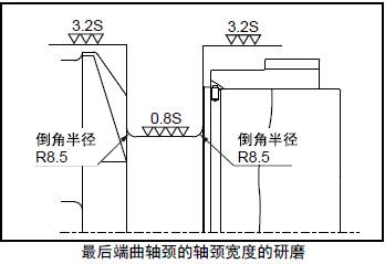 注意研磨時不要改變軸頸端部倒角的半徑。對于表面硬度明顯降低的三菱R16柴油發動機曲軸,要再進行熱處理并進行磁性探傷檢查。研磨加工后的表面精度均應滿足標準值要求。