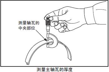 超過極限值時,將主軸瓦上下整套更換。根據三菱R16柴油發動機曲軸頸的磨損程度,在三菱R16柴油發動機曲軸重新研磨使用時,使用加厚尺寸的主軸瓦。