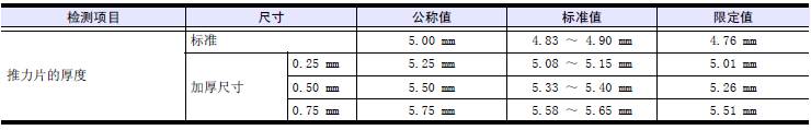 注: 使用的前后2片三菱R16柴油發動機推力片的厚度差不超過0.25 mm。