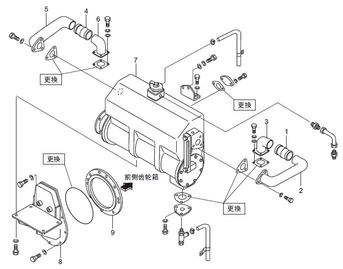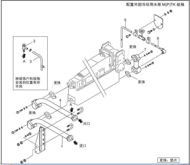 三菱S16柴油機冷卻水管的拆卸,檢修拆卸順序