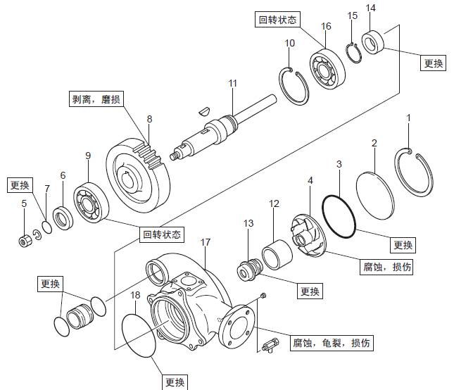 三菱S16柴油機空氣冷卻器用海水泵的解體、檢修