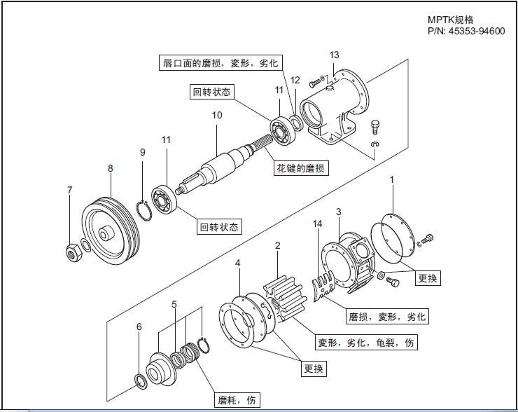 三菱S16柴油機空氣冷卻器水泵的解體、檢修