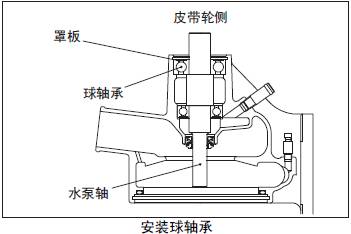 (1) 葉輪側球軸承的罩板側朝向葉輪側,壓入三菱S16柴油機水泵軸。
