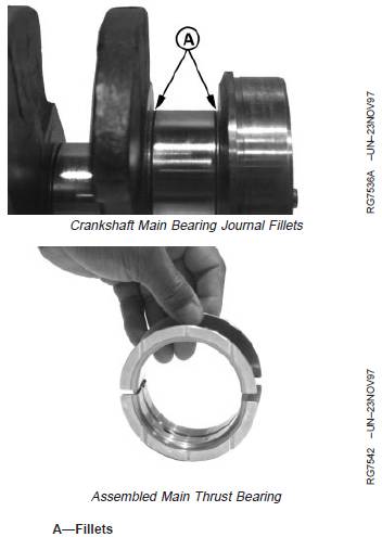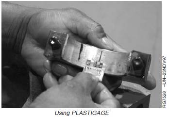 NOTE: The use of PLASTIGAGEâ will determine wear(crankshaft-to-bearing oil clearance) but will notdetermine condition of either bearing or journalsurface.