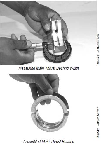 2. Measure and record width of main thrust bearing. Oil(side) clearance between thrust bearing and thrust journal must be within specifications.