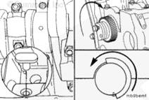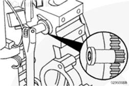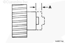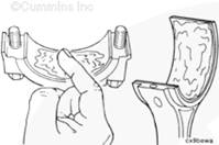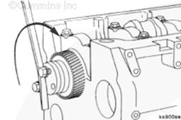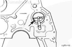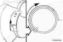 將盤車工具(零件號 3824591)插入飛輪殼中,并使其與飛輪齒圈嚙合。然后可以手持 1/2-英寸棘輪扳手或撬棍,轉動曲軸。
