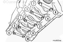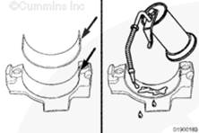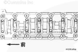 注: 主軸承蓋有位置編號。從缸體前端的 1 號開始,編號必須朝向康明斯ISB5.9 G CM2180發(fā)動機的凸輪軸側。