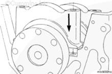 使用銷(零件號 3823818)或等同物,并緩慢轉動曲軸,以完成主軸承的安裝,確保它與缸體對準。確保主軸承上的定位舌座入缺口。