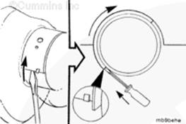 如果使用帶式活塞環(huán)壓縮器,確保帶的內(nèi)側沒有掛在活塞環(huán)的缺口并折斷活塞環(huán)。