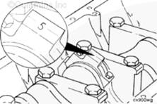 使用平頭改錐。輕輕撞擊軸承端,將其從缸體松開。然后,使用手指壓住主軸瓦并轉動曲軸,以便旋出主軸承。