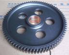 1.正時齒輪系:由曲軸齒輪、凸輪軸齒輪、輔助驅動齒輪以及中間齒輪等構成;由曲軸齒輪將運動傳遞給凸輪軸齒輪、輔助驅動齒輪,并由正時記號建立相互間的轉角關系,其中心距和齒側間隙由設計保證,裝配時勿需調整。