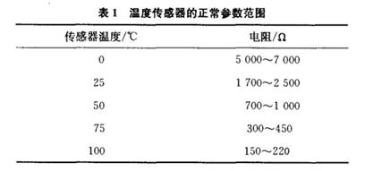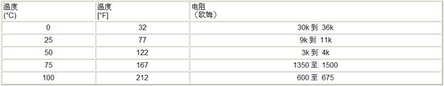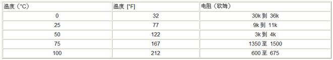 傳感器的電阻值隨溫度變化。如果傳感器的功能正常,觀察的讀數(shù)應(yīng)與下表數(shù)據(jù)進行對比。