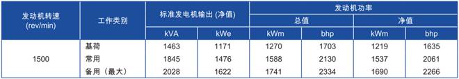 功率:于1500reWmin時,1690 kWm